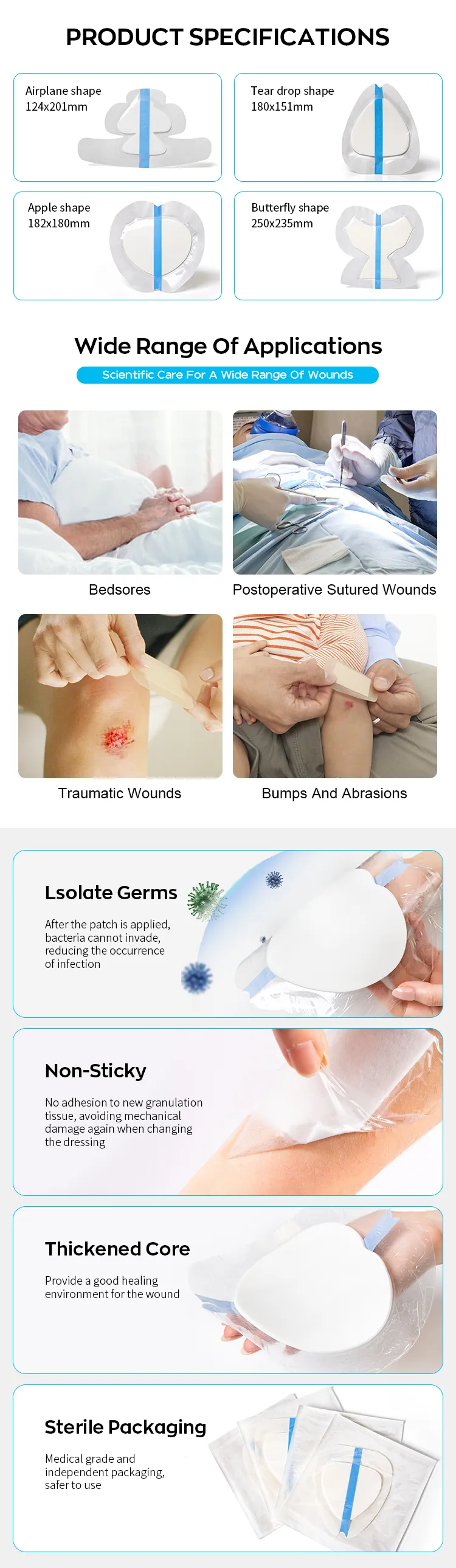 Southvo foam dressing is useful for moderately to highly exuding wounds, such as post-operative wounds, sacral bedsores, pressure ulcers, diabetic foot ulcers, venous leg ulcers, neuropathic ulcers, arterial ulcers, and Ⅰ–Ⅱ degree burns.