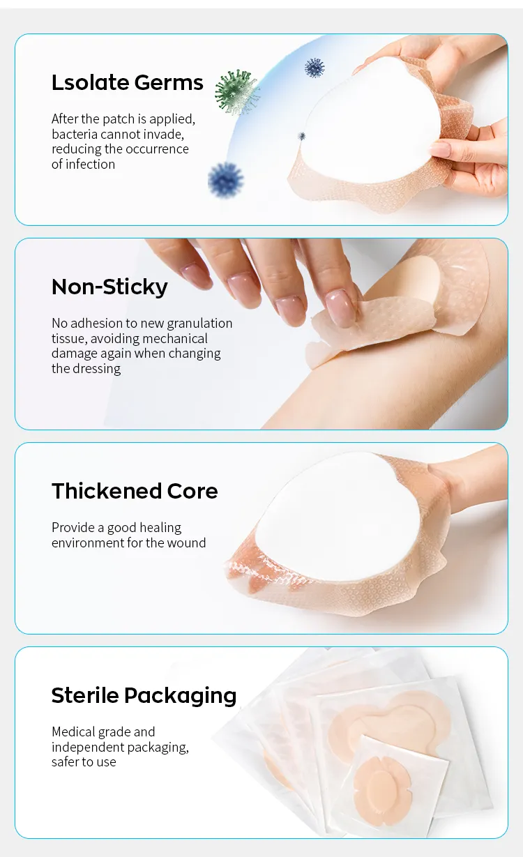 Southvo foam dressing is useful for moderately to highly exuding wounds, such as post-operative wounds, sacral bedsores, pressure ulcers, diabetic foot ulcers, venous leg ulcers, neuropathic ulcers, arterial ulcers, and Ⅰ–Ⅱ degree burns.