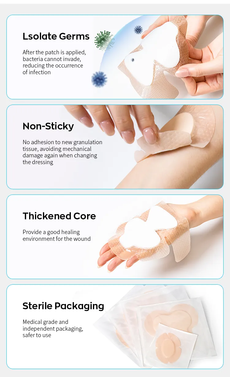 Southvo foam dressing is useful for moderately to highly exuding wounds, such as post-operative wounds, sacral bedsores, pressure ulcers, diabetic foot ulcers, venous leg ulcers, neuropathic ulcers, arterial ulcers, and Ⅰ–Ⅱ degree burns.